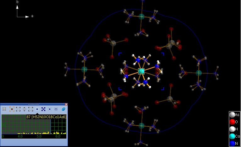 (1) Move the mouse cursor to the "Co1" atom in the center of the Co(NH3)6 molecule.