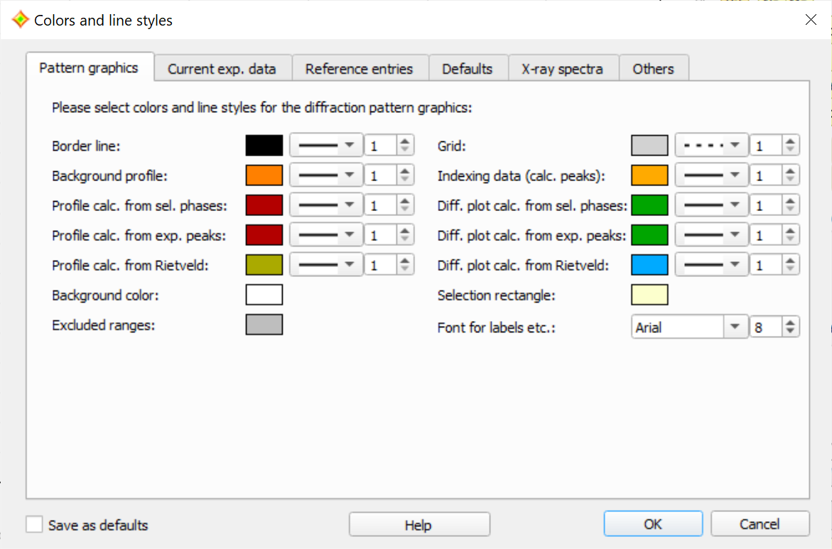 The colors of the experimental as well as the reference database patterns are assigned automatically at first, depending on the order of marking/selection. For this, user-definable default colors are used.