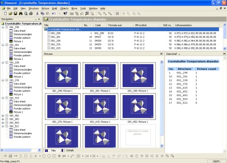 Screen shot of version 3.1 with a temperature study of crystoballite structures imported from multiple CIF files using the enhanced function "Insert Structures From File".
