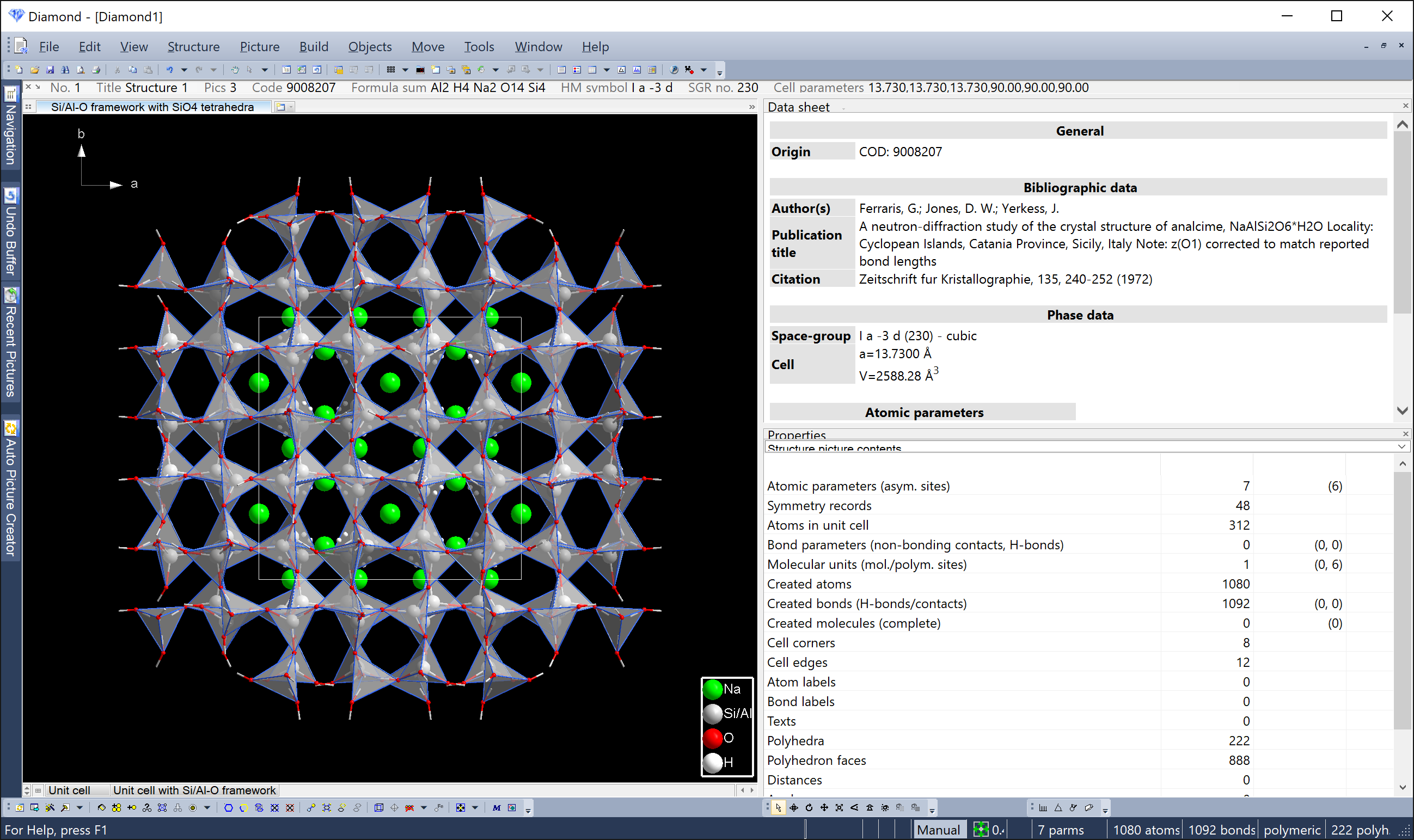 and diffraction table/diagram, rsp., are now positioned right beneath the structure picture(s) view. |