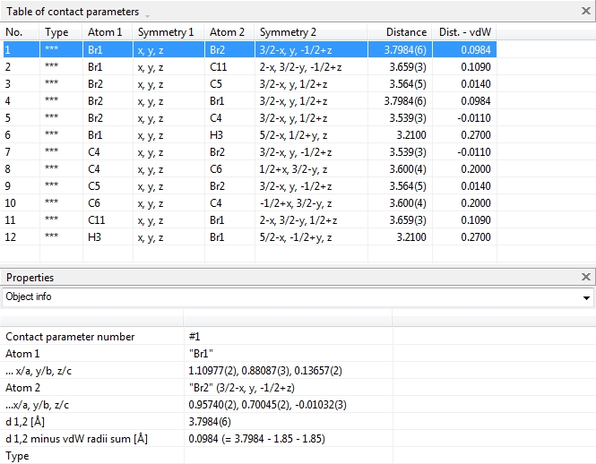 a) The table of bond parameters. These parameters are usually derived from CIF "_geom_bond_xxx"