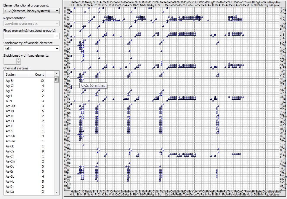 Pearson's Crystal Data Features: Chemical system matrix